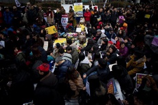 평화나비 네트워크를 비롯한 대학생·청년 단체 회원들은 이번 협상을 비판하며 소녀상 이전 반대 위해 지난달 30일부터 소녀상 옆에서 밤샘 노숙 농성에 들어갔다. 매일 저녁 7시에 촛불 집회를 마치고 늦은 밤 차가운 길거리 위에 침낭을 펴고 잠을 청한다. 영하 속 날씨에 춥고 힘들지만 대학생들은 꿋꿋하게 자리를 지킬 것이라 말한다.