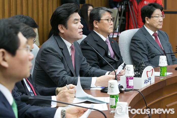 (서울=포커스뉴스) 원유철(오른쪽 세번째) 새누리당 원내대표가 8일 오전 서울 여의도 국회에서 열린 원내대책회의에 참석해 모두발언하고 있다.
