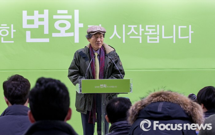 (서울=포커스뉴스) 8일 오전 서울 마포구 안철수 무소속 의원 당사에서 창당준비위원장직을 수락한 한상진 서울대 명예 교수가 인사말을 하고 있다.
