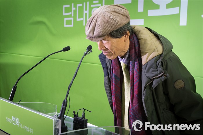 (서울=포커스뉴스) 8일 오전 서울 마포구 안철수 무소속 의원 당사에서 창당준비위원장직을 수락한 한상진 서울대 명예 교수가 취재진에게 인사하고 있다.