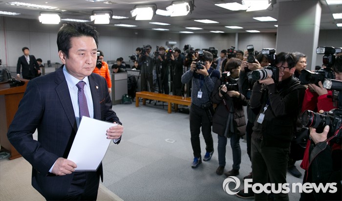 (서울=포커스뉴스) 김영환 더불어민주당 의원이 8일 오전 서울 여의도 국회 정론관에서 탈당 기자회견을 마친 뒤 퇴장하고 있다.