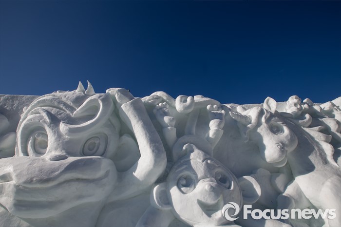 (화천=포커스뉴스) 산천어축제를 하루 앞둔 8일 오후 강원도 화천군 산천어축제 행사장인 화천천에 얼음조각 작품이 전시되고 있다. 산천어축제는 오는 9일부터 31일까지 강원도 화천군 화천천 및 3개읍면 일원에서 진행될 예정이다.