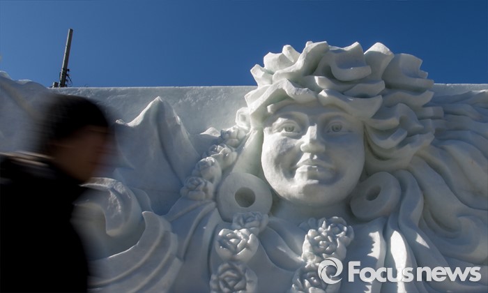 (화천=포커스뉴스) 산천어축제를 하루 앞둔 8일 오후 강원도 화천군 산천어축제 행사장인 화천천에 얼음조각 작품이 전시되고 있다. 산천어축제는 오는 9일부터 31일까지 강원도 화천군 화천천 및 3개읍면 일원에서 진행될 예정이다.