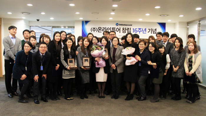 2016년 창립 16주년을 맞는 온라인투어는 이날 기념식에서 대표 기념사와 함께 2000년 1월 창립부터 지난 16년간에 연혁을 다시금 되돌아보는 시간을 가졌다. 또한 10년 근속 최혜은 자유여행 본부장을 포함 총 52명의 장기근속자에게 소정의 포상금과 상장을 수여하며 감사의 뜻을 전했다.