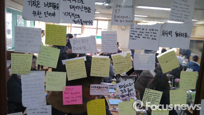 (안산=포커스뉴스) 10일 오후 경기도 안산 단원고 '4.16 기억의 교실'에서 유가족과 시민단체레서마련한세월호 참사 희생학생들을 위한 겨울방학식이 열리고 있다. 안산단원고 세월호 피해자 모임인 4.16 유가족협의회 회원들은12일로 예정된 단원고 졸업식에 불참하는 대신 시민들과 2014년 4월 16일 세월호 참사로 희생된 학생과 교사들이 사용하던 교실과 교무실인 '4.16 기억의 교실'에서 명예 3학년 1반부터 10반 교실까지 자리 앉기, 출석 부르기, 방학식 메시지, 안산분향소 방문 등 순으로 방학식을 진행했다. <사진제공= 이관희사진가>
