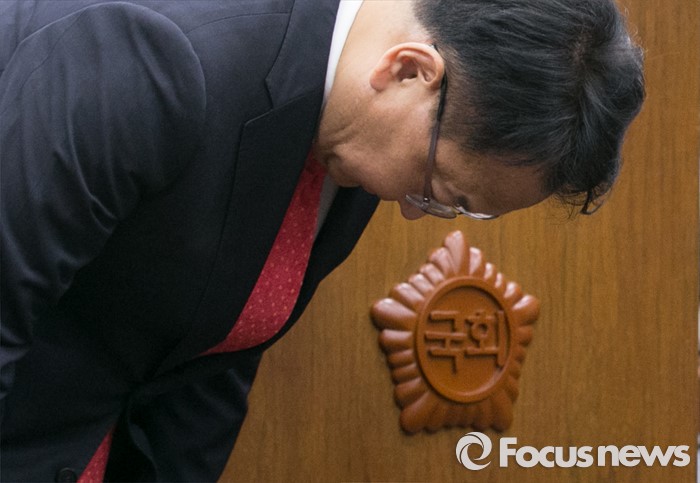 (서울=포커스뉴스) 유일호 경제부총리 겸 기획재정부 장관 후보자가 11일 오전 서울 여의도 국회 기획재정위원회 전체회의장에서 열린 인사청문회에 출석해 후보자 선서 전, 인사하고 있다.