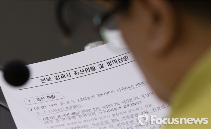 (세종=포커스뉴스) 이동필 농림축산식품부장관이 12일 오전 세종시 농식품부 AI·구제역대책상황실에서 열린 구제역 방역상황 긴급 점검회의에 참석해 자료를 살피고 있다.