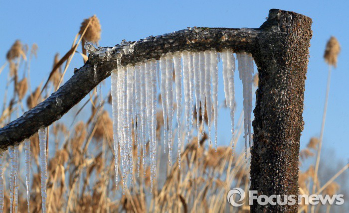 (안산=포커스뉴스) 올 겨울들어 가장 추운 12일 오후 경기도 안산시 상록구 사동 시화 갈대숲에 고드름이 주렁주렁 달려있다. (사진제공=이관희사진가)