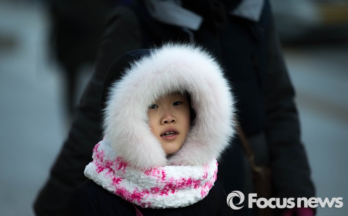 (서울=포커스뉴스) 계속되는 맹추위로 전국이 꽁꽁 얼어붙은 13일 오전 서울 종로구 세종로 사거리에서 한 어린이가 중무장을 하고 걷고 있다. 현재 서울 기온은 영하 9도를 기록하고 있으며 충남과 호남 서해안 지역에는 대설주의보가 내려졌다.