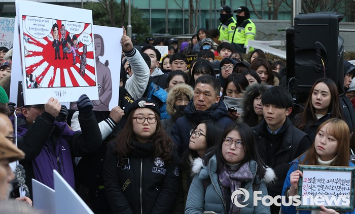 일본정부 공식 사과 촉구하는 수요시위 참가자들