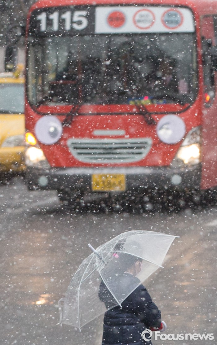 (서울=포커스뉴스) 서울을 포함한 중부지방에 많은 눈이 내린 13일 오후 서울 강북구의 한 도로에서 우산을 쓴 어린이가 발걸음을 재촉하고 있다.