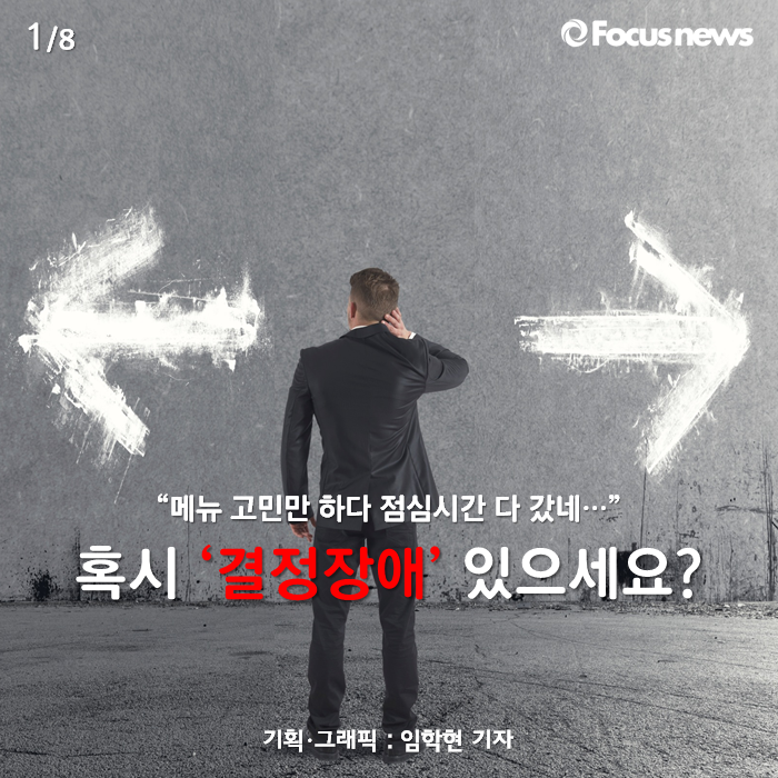 바로 '결정장애'를 앓고 있는 사람들인데요. '결정장애'는 의학적으로 공인된 말은 아니지만 요즘 사람들에게 널리 사용되는 말입니다. 카드뉴스를 통해 우리가 결정장애를 앓고 있는 이유가 도대체 무엇인지 알아보시죠.