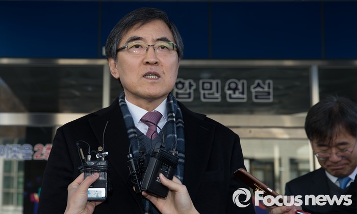 (성남=포커스뉴스) 14일 오전 경기 성남시 수원지방법원 성남지원에서 열린 이부진 호텔신라 사장이 남편인 임우재 삼성전기 상임고문을 상대로 낸 이혼 및 친권자 지정 등 소송 선고 공판에서 이 사장의 법률대리인이 취재진의 질문에 답변을 하고 있다.