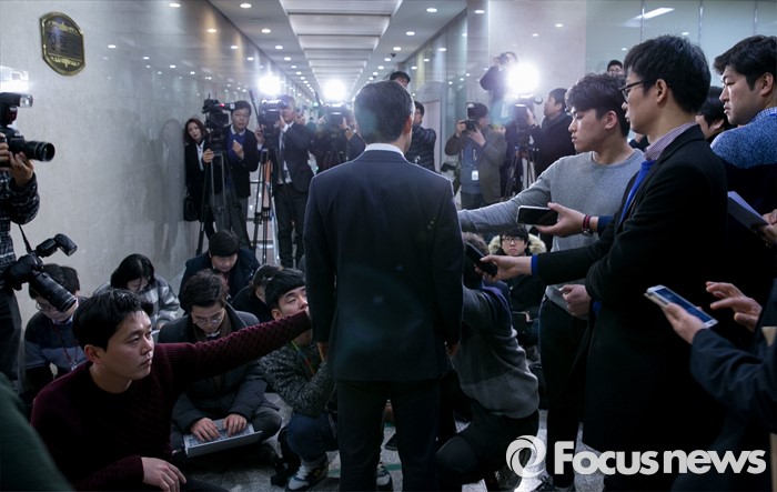(서울=포커스뉴스) 김승남 더불어민주당 의원이 14일 오전 서울 여의도 국회 정론관에서 탈당 기자회견을 마친 뒤 취재진 질문에 답하고 있다.