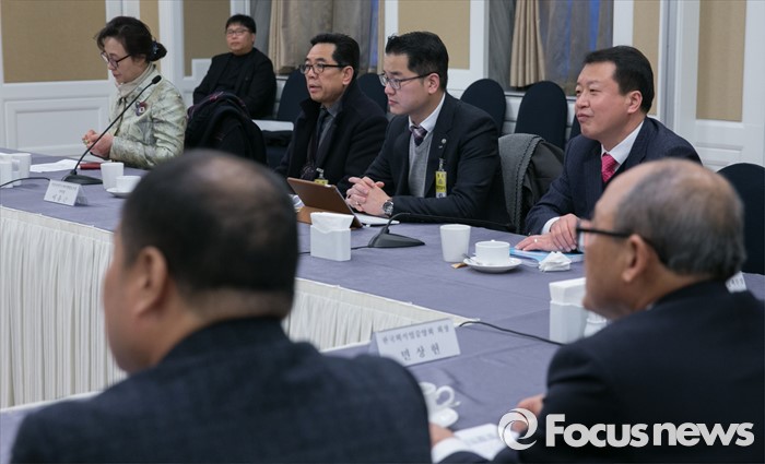 | △ 카드수수료 관련 발언 듣는 업계 참석자들 |