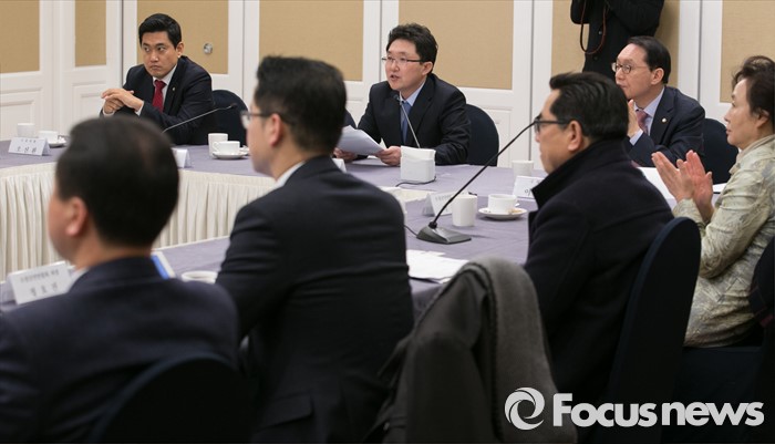 (서울=포커스뉴스) 15일 오전 서울 여의도 국회 귀빈식당에서 열린 카드수수료 관련 간담회에서 정무위원회 여당 간사인 김용태 새누리당 정책위부의장이 모두발언을 하고 있다. 이날 간담회는 최근 카드사들이 중·대형 가맹점들에 수수료 인상을 통보한 것과 관련 업계 의견을 청취하기 위해 진행됐으며 한국외식업중앙회, 대한약사회, 서울남서부슈퍼마켓협동조합, 소상공인연합회 등이 참석했다.