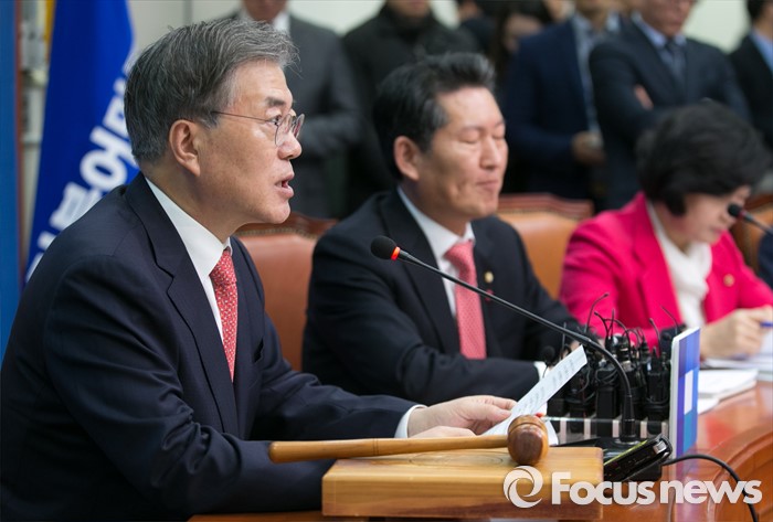 (서울=포커스뉴스) 문재인 더불어민주당 대표가 15일 오전 서울 여의도 국회에서 열린 최고위원회의에 참석해 모두발언을 하고 있다.