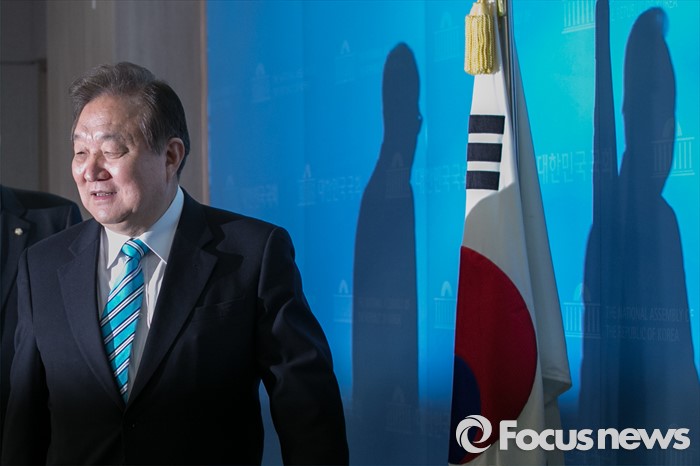 (서울=포커스뉴스) 정대철 더불어민주당 상임고문이 15일 오전 서울 여의도 국회 정론관에서 탈당 표명을 위한 기자회견에 입장하고 있다.