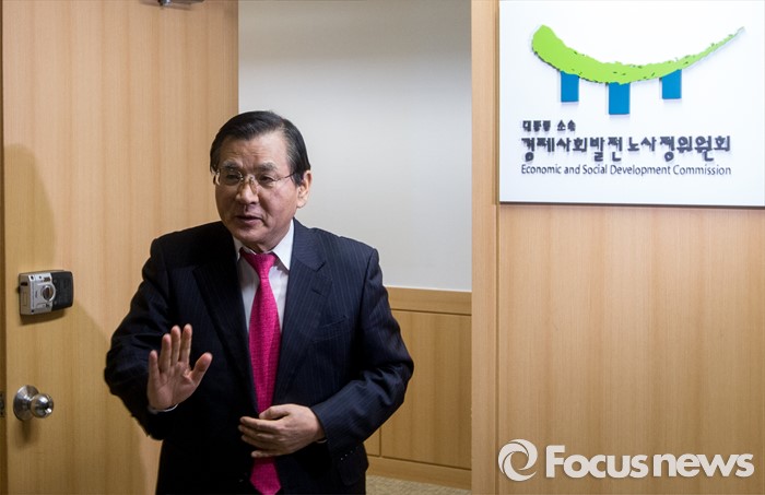 (서울=포커스뉴스) 15일 오전 서울 종로구 정부서울청사에서 노사정위원회 주최로 열린 '노동시장 구조개선 특별위원회 조찬간담회'에 참석한 김대환 경제사회발전노사정위원장이 잠시 자리를 비우고 있다.
