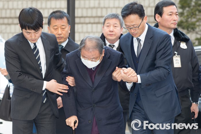 (서울=포커스뉴스) 조세포탈과 횡령·배임 등의 혐의로 기소된 조석래 효성그룹 회장이 15일 오후 서울 서초구 서울중앙지법에서 열린 1심 선고 공판에 출석하기 위해 법정으로 향하고 있다.