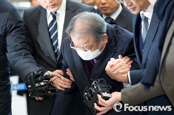 (서울=포커스뉴스) 조세포탈과 횡령·배임 등의 혐의로 기소된 조석래 효성그룹 회장이 15일 오후 서울 서초구 서울중앙지법에서 열린 1심 선고 공판에 출석하기 위해 법정으로 향하고 있다.