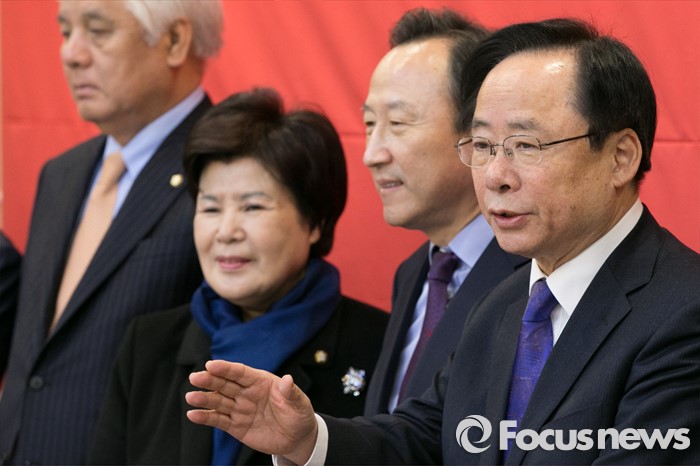 이날 회의에는 이영 교육부 차관이 함께 참석했다.이주영(오른쪽) 새누리당 저출산대책특위 위원장이 15일 오전 서울 여의도 국회 귀빈식당에서 열린 사교육비 절감방안 논의를 위한 당정협의에 참석해, 기념촬영 중 인사말을 하고 있다.