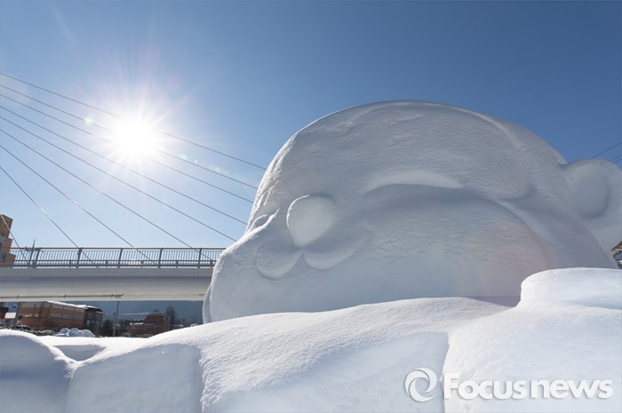 (평창=포커스뉴스) 15일 오후 강원도 평창군 횡계리 일대에서 열린 대관령 눈꽃축제를 찾은 관람객들이 눈으로 만든 조각들을 보며 즐거운 시간을 보내고 있다.