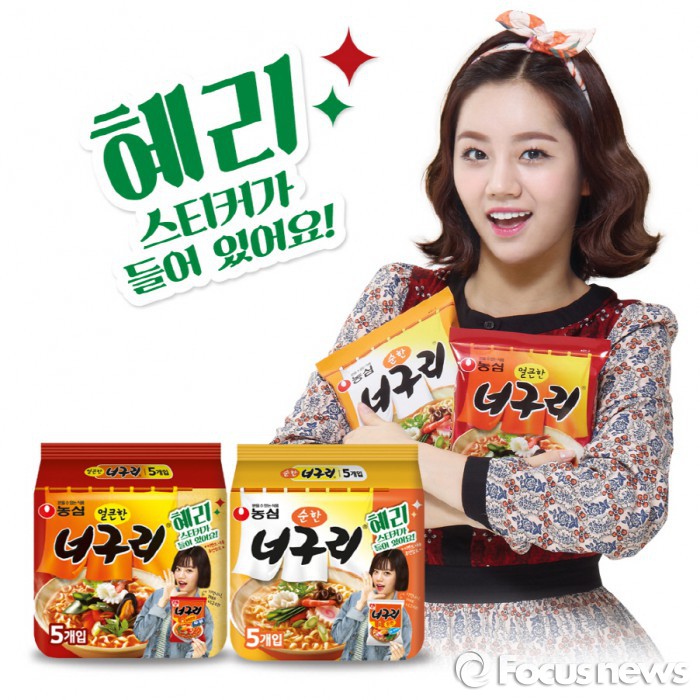 한편, 농심 너구리 멀티팩 한정판 출시 기념 이벤트도 진행하고 있다. 혜리 스티커의 사진을 찍어 홈페이지에 올리면 추첨을 통해 백화점 상품권 등을 증정한다. 응모자 1명당 너구리 1봉지를 기부하는 ‘사랑 나눔 활동’도 함께 진행된다.너구리 멀티팩 한정판 포스터. <사진제공=농심>