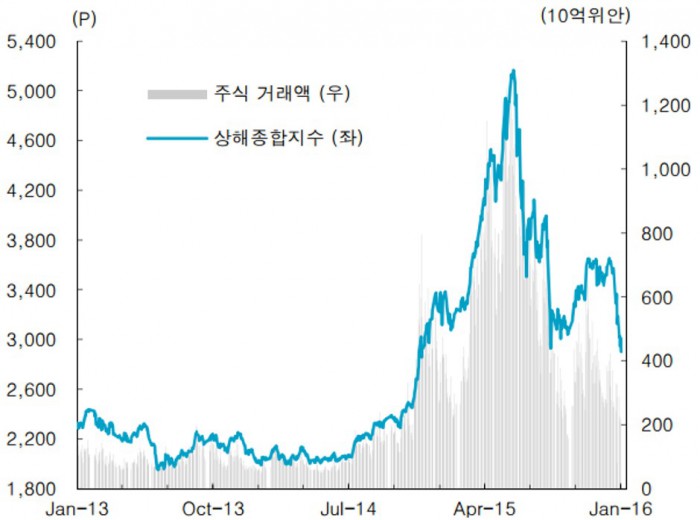 김경환 하나금융투자 연구원은 "중국경제 둔화 원인은 순환적인 문제가 아닌 과잉투자, 부동산, 부채 등 구조적인 문제로 단순한 수요촉진 방식의 부양책을 통해 해결될 수 없다"고 밝혔다.중국 증권사 객장 모습 ⓒ게티이미지/멀티비츠2015.11.17 장영일 기자 상하이지수 추이 <자료출처=한국투자증권 등>