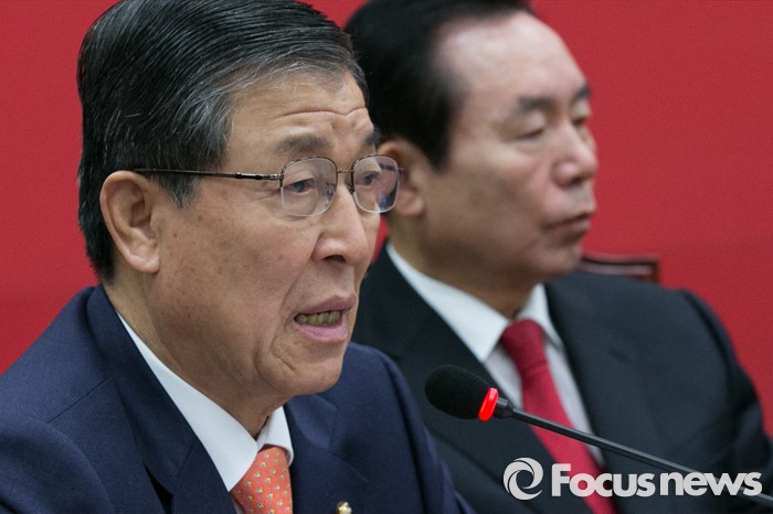 (서울=포커스뉴스) 황진하(왼쪽) 새누리당 사무총장이 18일 오전 서울 여의도 국회에서 열린 최고위원회의에 참석해 발언하고 있다.