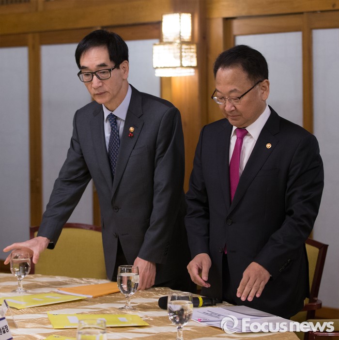 | △ 첫 당정청 협의회 참석하는 유일호-이준식 장관 |