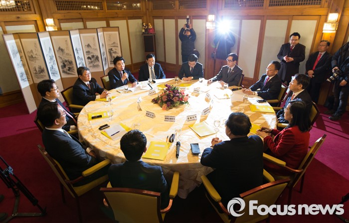 (서울=포커스뉴스) 19일 오전 서울 종로구 삼청동 국무총리공관에서 열린당·정·청 정책조정협의회에 참석한 원유철 새누리당 원내대표가 모두발언을 하고 있다.