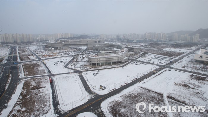 (세종=포커스뉴스) 지난 18일 밤에 내린 눈으로 19일 오전 세종시 정부세종청사 주변이 하얀 설경을 보이고 있다.