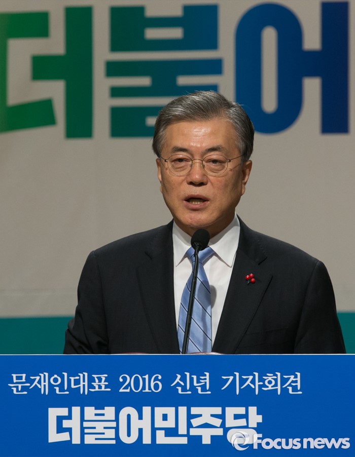 (서울=포커스뉴스) 문재인 더불어민주당 대표가 19일 오전 서울 여의도 국회 의원회관 대회의실에서 신년 기자회견을 하고 있다.