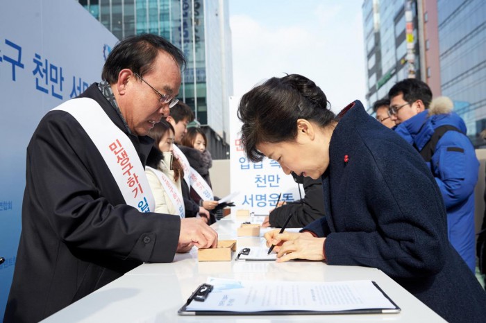 더불어민주당은 박 대통령의 서명 참여에 대해"눈과 귀를 의심하게 하는 사건"이라고 비판했다.