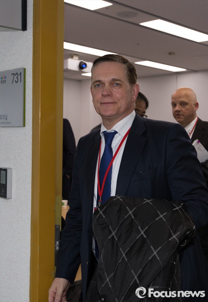 (세종=포커스뉴스) 요하네스 타머 아우디폭스바겐코리아 사장과 프리드리히 요한 아이히러 독일 폭스바겐 파워트레인 총괄책임자 등 독일본사 직원들이 19일 오전 세종시 정부세종청사 환경부 교통환경과에서 결함시정 관련 기술적 내용을 설명하고 환경부를 나서고 있다.