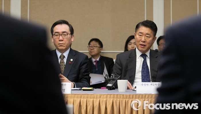 (서울=포커스뉴스) 20일 오전 서울 여의도 국회 귀빈식당에서 열린 테러 위기상황 대처를 위한 합동 당정협의에 참석한 김수민(오른쪽) 국가정보원 2차장이 발언하고 있다. 왼쪽은 조태열 외교부 2차관.