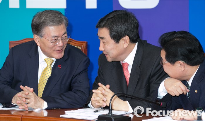(서울=포커스뉴스) 문재인(왼쪽부터) 더불어민주당 대표와 이종걸 원내대표, 전병헌 최고위원이 20일 오전 서울 여의도 국회에서 열린 최고위원회의에 참석해 대화하고 있다.