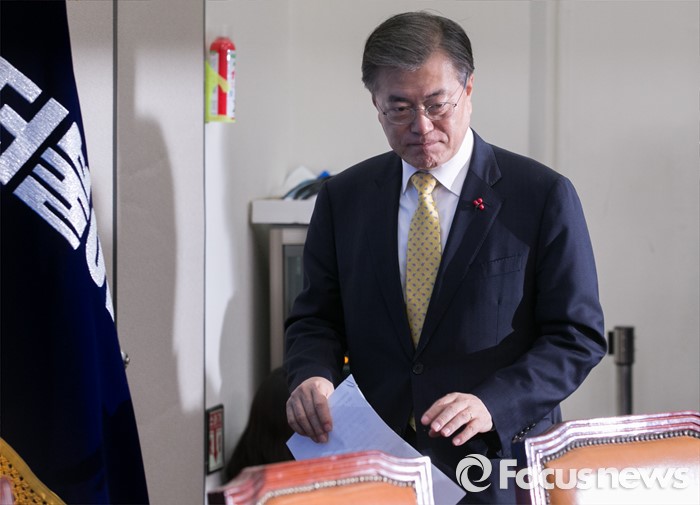 (서울=포커스뉴스) 문재인 더불어민주당 대표가 20일 오전 서울 여의도 국회에서 열린 최고위원회의에 참석하고 있다.