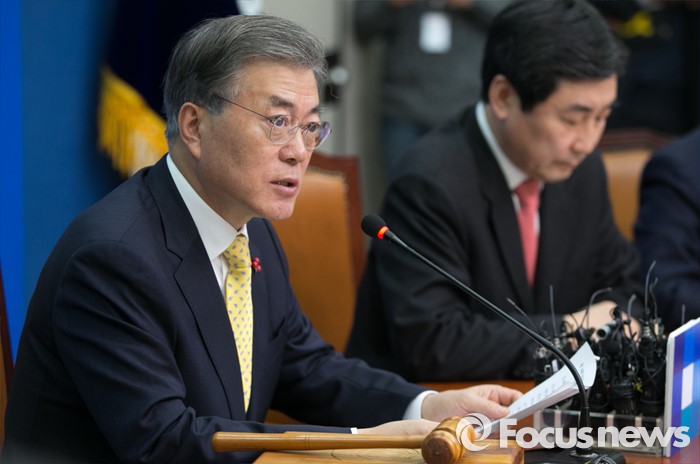 (서울=포커스뉴스) 문재인 더불어민주당 대표가 20일 오전 서울 여의도 국회에서 열린 최고위원회의에 참석해 모두발언을 하고 있다.