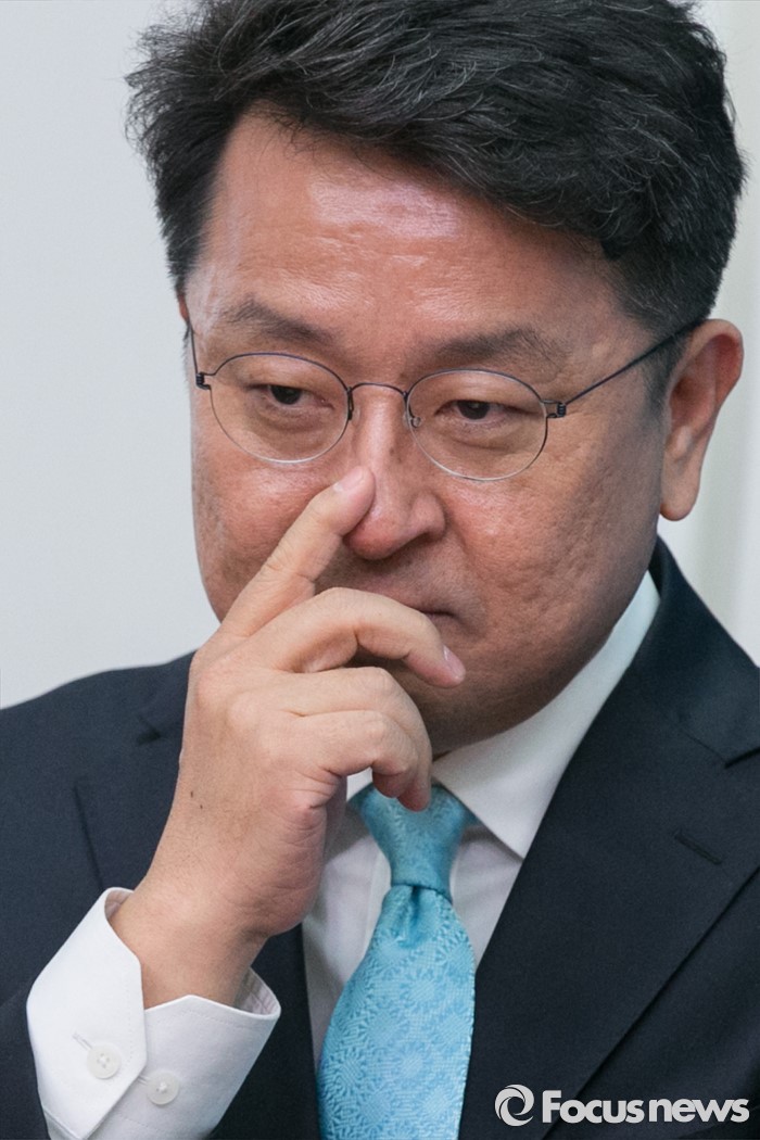 (서울=포커스뉴스) 이철희 두문정치연구소 소장이 20일 오전 서울 여의도 국회 더불어민주당 대표실에서 열린 입당 기자회견에 참석해 생각에 잠겨 있다.