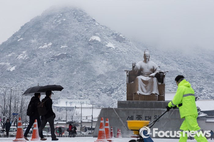 이 차관은 예방사업장인 천안 삼성저수지와 안서소하천 정비사업 현장을 방문해 "겨울철을 대비해 현장의 안전관리 대책을 점검해주길 바란다"며 "또 여름철 피해가 발생하지 않도록 우기 전에 사업이 완공될 수 있도록 당부한다"고 전했다.전국 대부분 지방에 대설주의보가 내려진 지난달 3일 오전 서울 중구 광화문 세종대왕상 인근 환경미화원이 제설작업을 하고 있다. 허란 기자