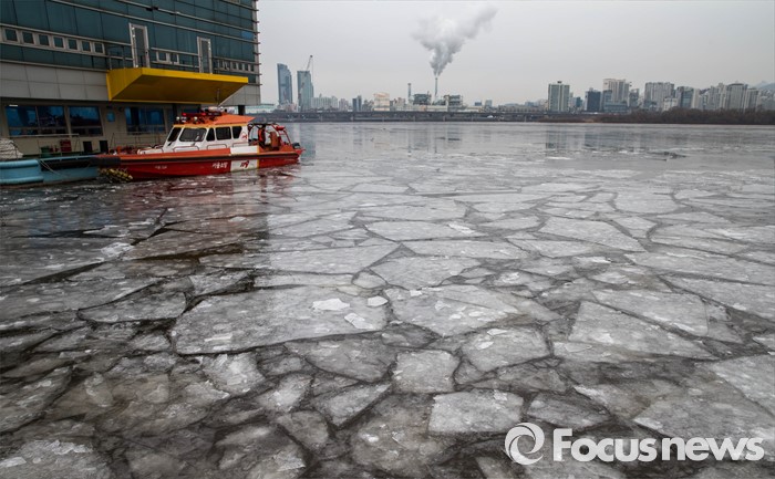 (서울=포커스뉴스) 절기상 '대한' 이며 한강이 공식 결빙된 것으로 발표된 21일 오전 서울 영등포구 119 특수구조단 수난구조대 부근 한강변이 꽁꽁 얼어 있다. 한강 결빙 관측은 한강대교 노량진 방향 2번째와 4번째 교각 사이에서 이루어지며 상류 쪽으로 100m 부근의 남북 간 띠 모양 지점이 얼었는지에 따라 결빙 여부를 판정한다.