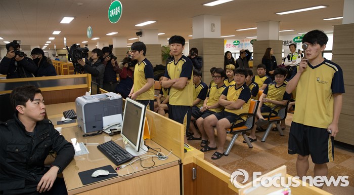 (서울=포커스뉴스) 2016년 첫 징병검사가 실시된 21일 오전 서울 영등포구 서울지방병무청에서 징병대상자들이 시력을 측정하고 있다.