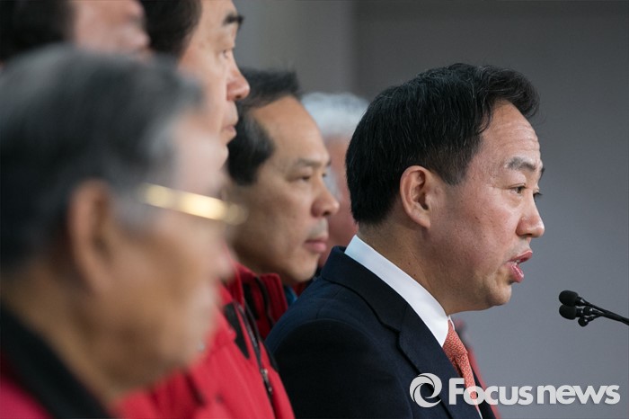 (서울=포커스뉴스) 새누리당 마포갑 지역위원회 위원장인 강승규 예비후보가 21일 오후 서울 여의도 국회 정론관에서 안대희 전 대법관의 당 최고위원 지명과 관련해 입장을 표명하고 있다.