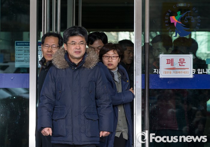 (서울=포커스뉴스) 21일 오후 서울 서초구 서울고등법원 별관에서 열린 법외노조 통보처분 취소소송 항소심을 마친 변성호 전국교직원노동조합 위원장이 발걸음을 옮기고 있다.