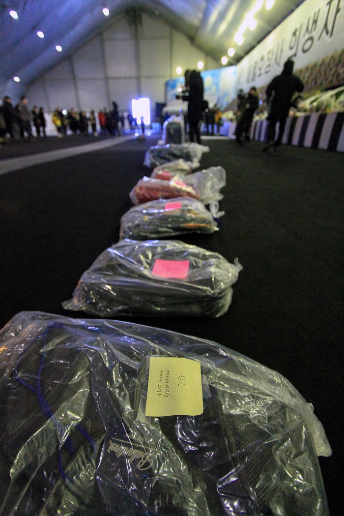 (서울=포커스뉴스) 21일 오후 경기 안산시 단원구 세월호 참사 희생자 정부 합동분향소에 세월호 희생자들의 유품·유류품이 놓여 있다.