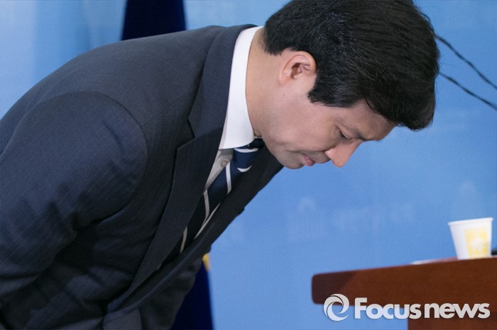 (서울=포커스뉴스) 문대성 새누리당 의원이 22일 오전 서울 여의도 국회 정론관에서 20대 총선 불출마 선언 철회를 발표한 뒤, 인사하고 있다.