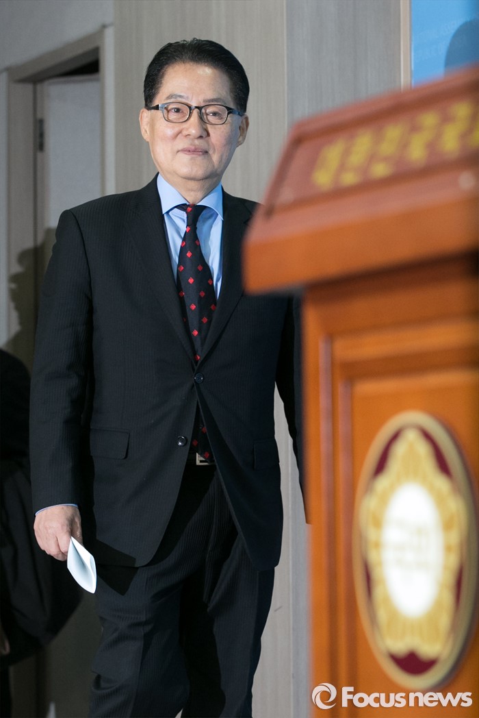 (서울=포커스뉴스) 박지원 더불어민주당 의원이 22일 오전 서울 여의도 국회 정론관에서 탈당 입장을 발표하기 위해 들어서고 있다.