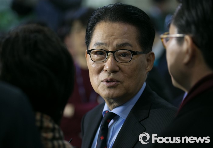 (서울=포커스뉴스) 박지원 더불어민주당 의원이 22일 오전 서울 여의도 국회에서 탈당 기자회견에 앞서 관계자들과 대화하고 있다.